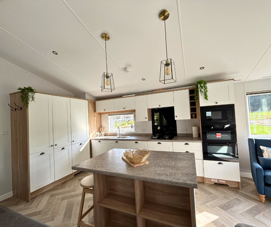 The Pinehurst is designed to feel more like a modern bungalow than a traditional holiday lodge. Its extra-wide footprint creates a beautifully open-plan lounge, dining, and kitchen area that feels bright, airy, and effortlessly sociable.